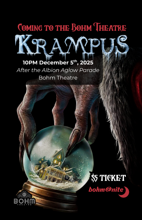 Bohm Theatre 201 S. Superior St, Albion, MIKRAMPUS bohm@nite A boy who has a bad Christmas accidentally summons a festive demon to his family home. December 5| 10:00 PM $5.00 Tickets