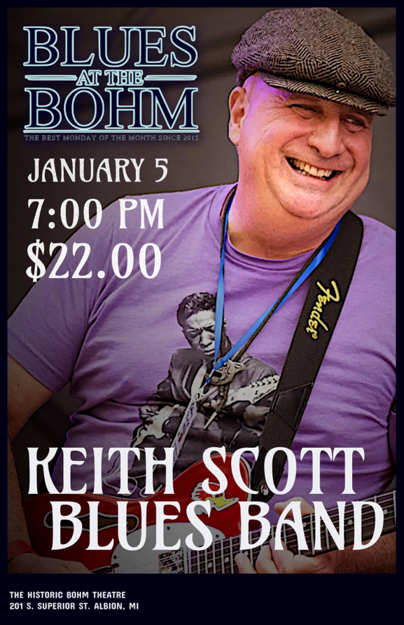 Bohm Theatre 201 S. Superior St, Albion, MIKEITH SCOTT BLUES BAND January 5 @7:00 PM Remarkably versatile, Chicago-based blues/rock guitarist Keith Scott has been working his way methodically up through the blues" ranks since his parents bought him his first guitar at age 14 and his young ears heard Muddy Waters in 1980. Born in White Plains, N.Y., Scott was first exposed […]