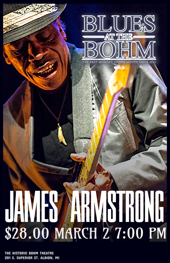 Bohm Theatre 201 S. Superior St, Albion, MIJAMES ARMSTRONG MARCH 2 @7:00 PM Come see James Armstrong perform in concert! Seen live, Armstrong has a confident stage presence that combines grace with mischief. Few blues artists know […]