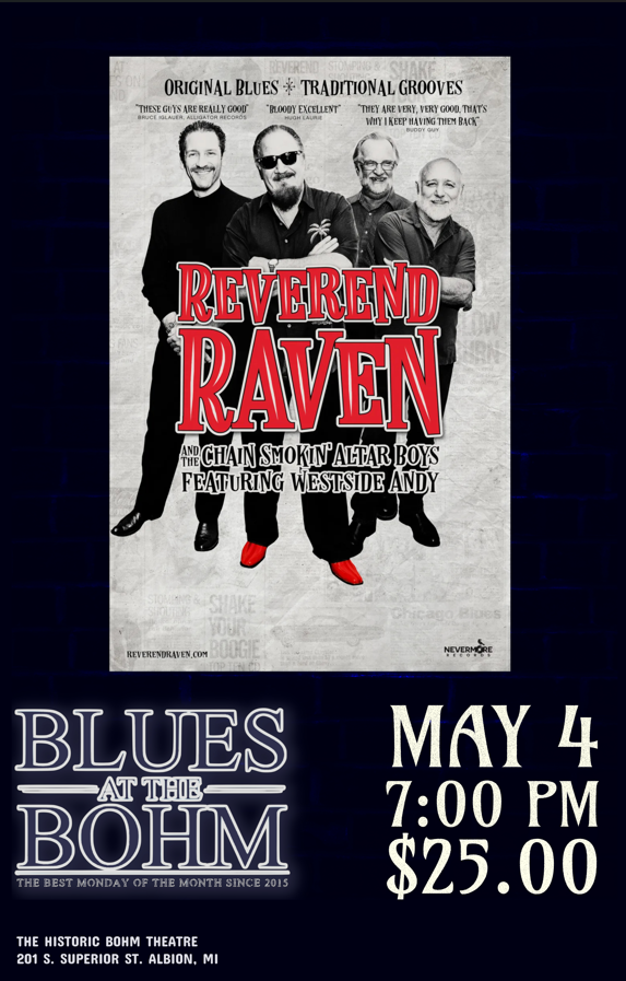 Bohm Theatre 201 S. Superior St, Albion, MIREVEREND RAVEN AND THE CHAIN SMOKIN' ALTAR BOYS MAY 4 @7:00 PM Bringing crowds to their feet at the hardest to please and sophisticated night clubs in the Midwest, Reverend […]